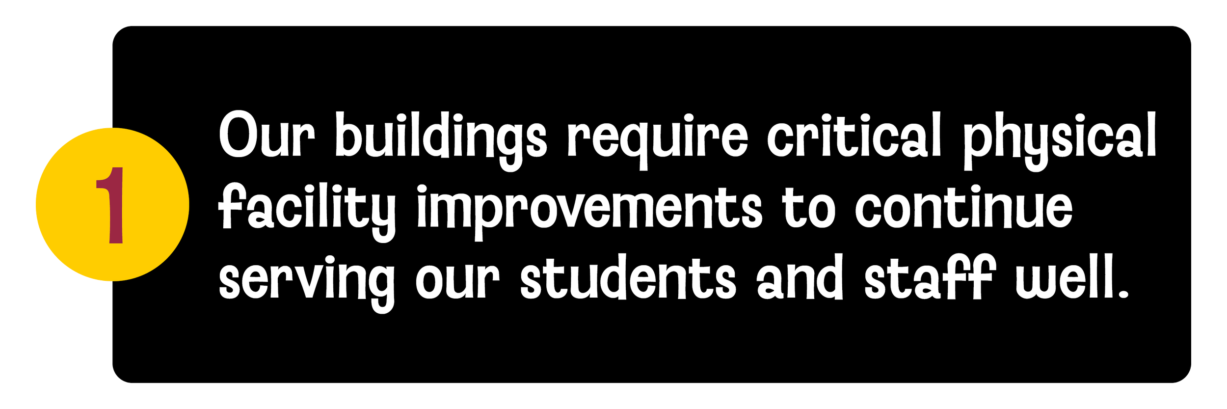 Our buildings require critical physical facility improvements to continue serving our students and staff well.