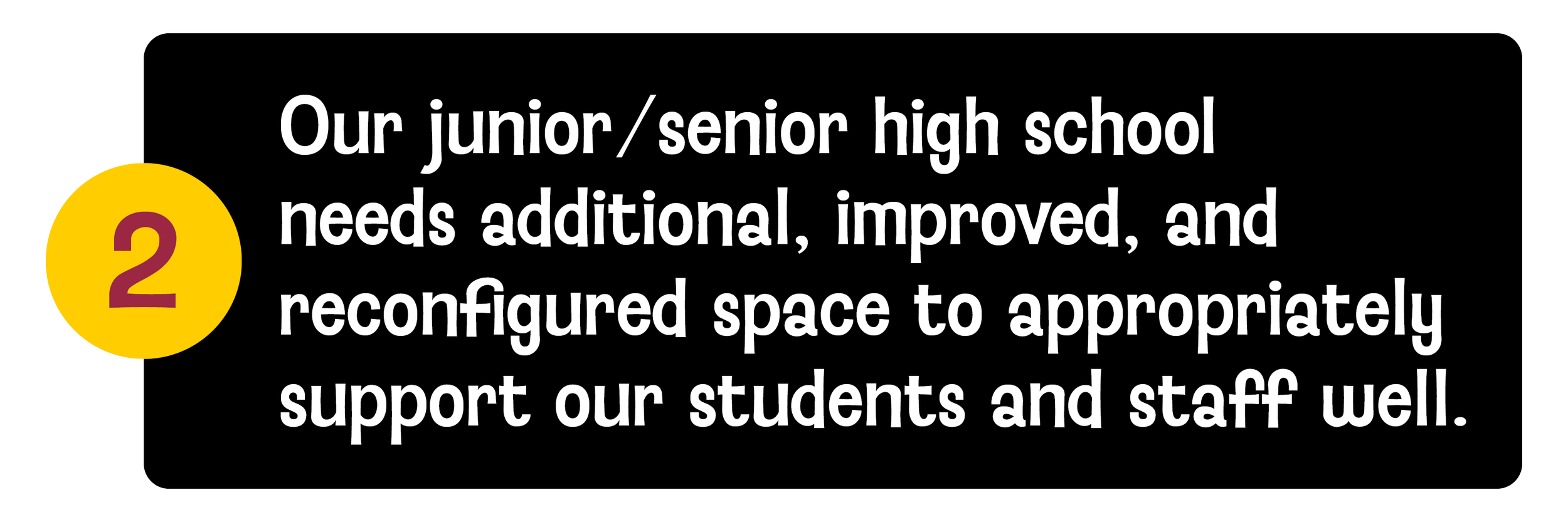 Our junior/senior high school needs additional, improved, and reconfigured space to support our students and staff well.