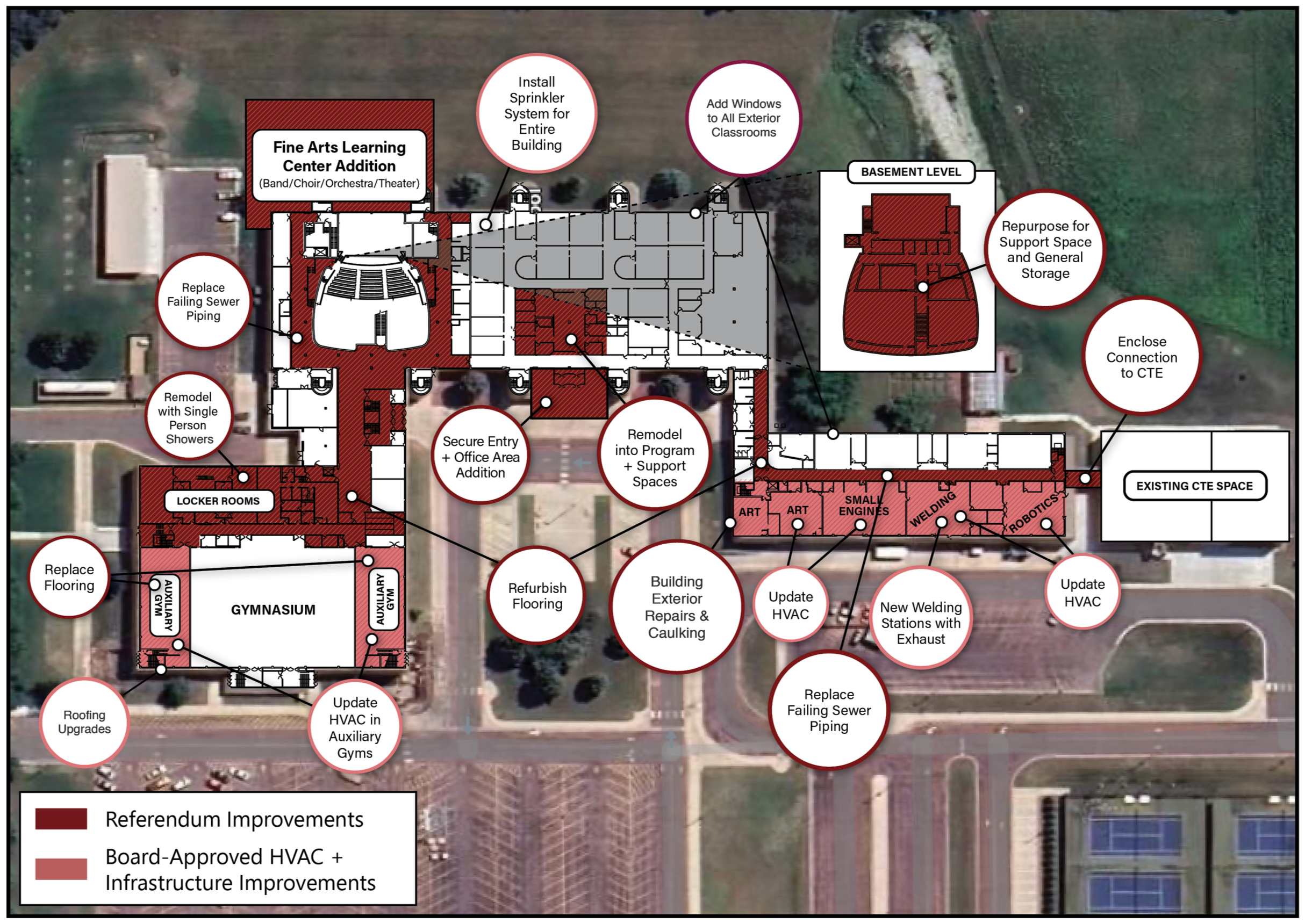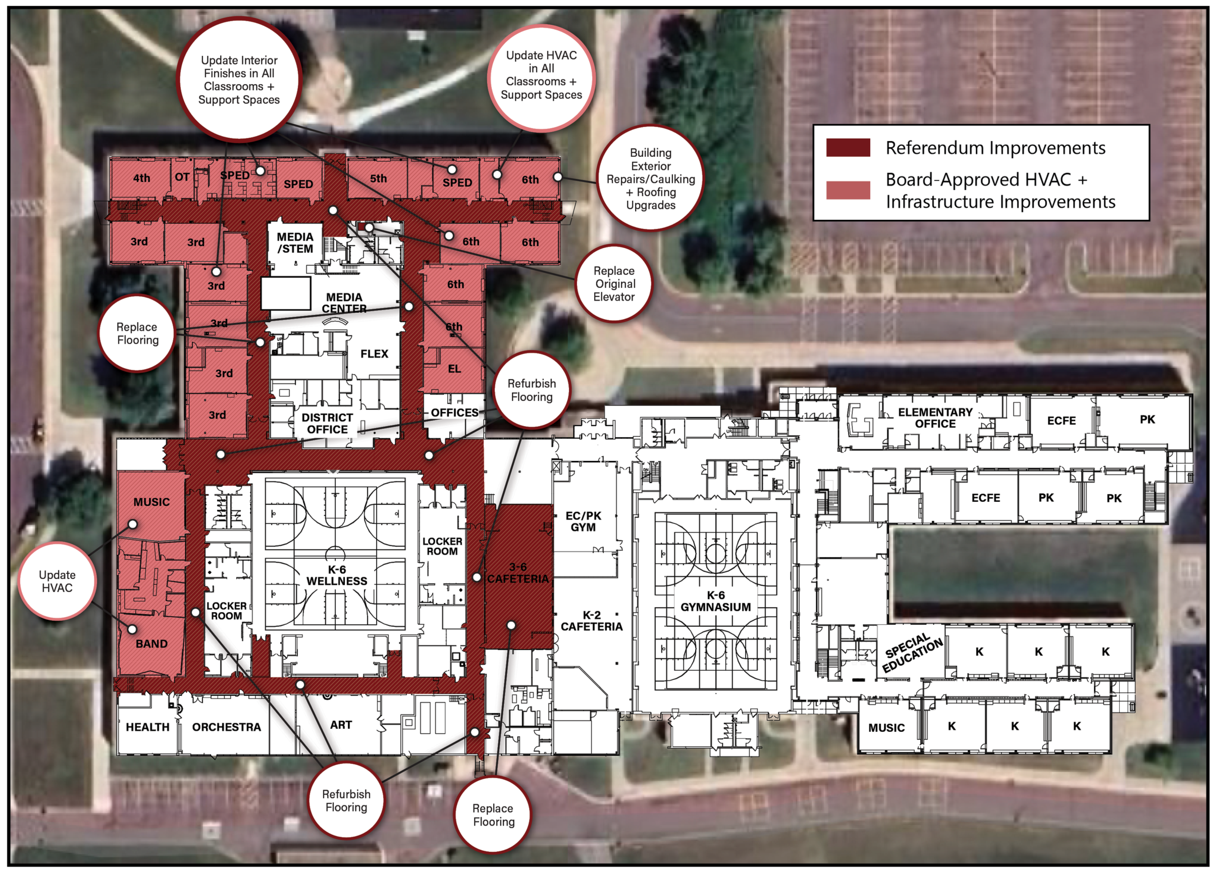 Yes. On Tuesday, July 22, the school board used its authority to authorize levying funding to address critical physical infrastructure needs in both schools. Approximately $17.8 million will be used to make critical improvements to the mechanical and HVAC systems in select areas at both our elementary and junior/senior high schools, address critical roofing needs in select locations of both buildings, and install a fire sprinkler system at our junior/senior high school. These improvements are not included in the proposed voter-approved building bond referendum. However, they would be implemented at the same time if voters approve the proposed building bond referendum, resulting in schedule and cost efficiencies.